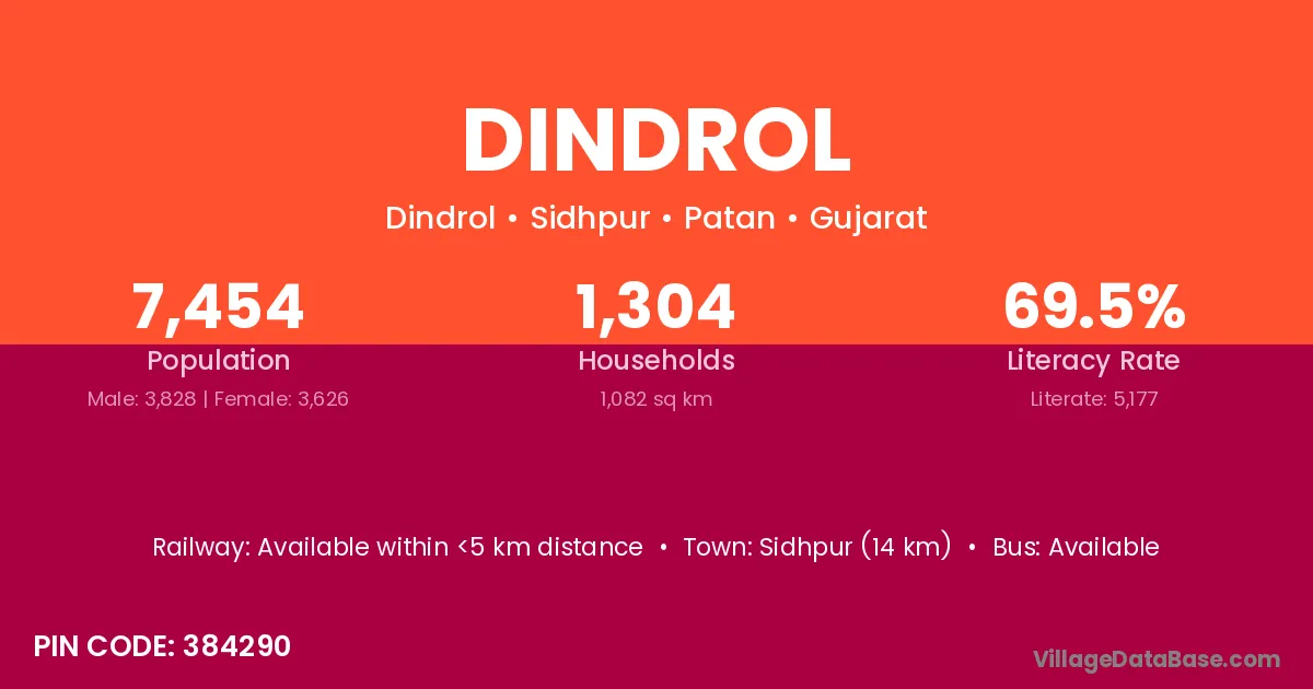 Sidhpur (14 km) is the nearest town to Dindrol village for major economic activities and is located approximately 14 km away.