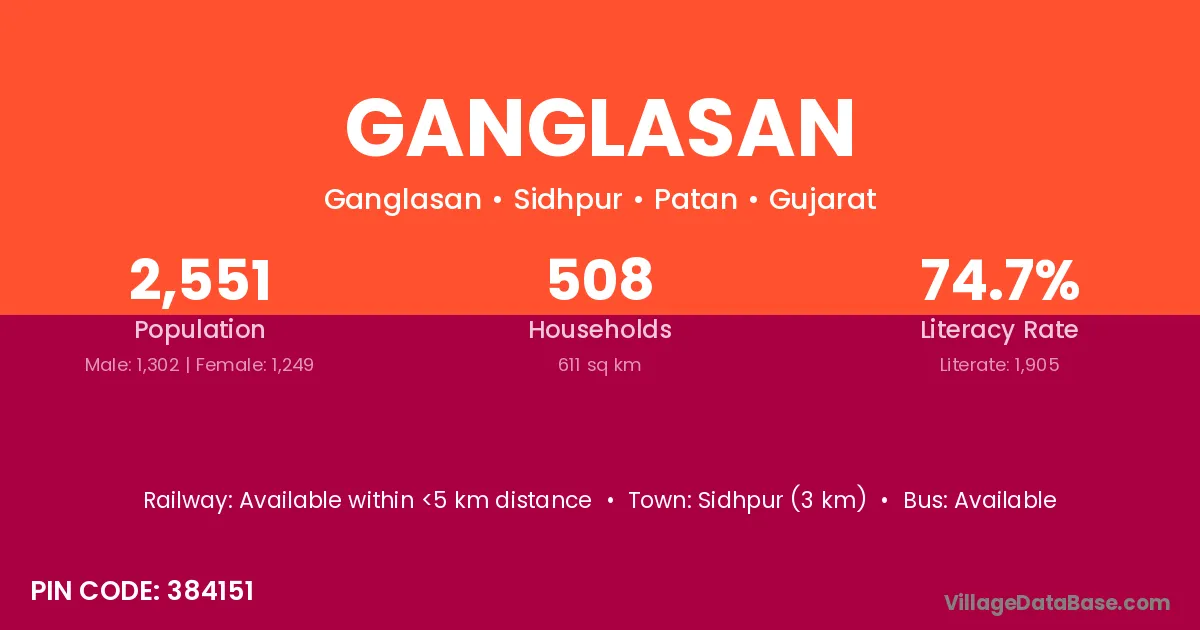 Sidhpur (3 km) is the nearest town to Ganglasan village for major economic activities and is located approximately 3 km away.