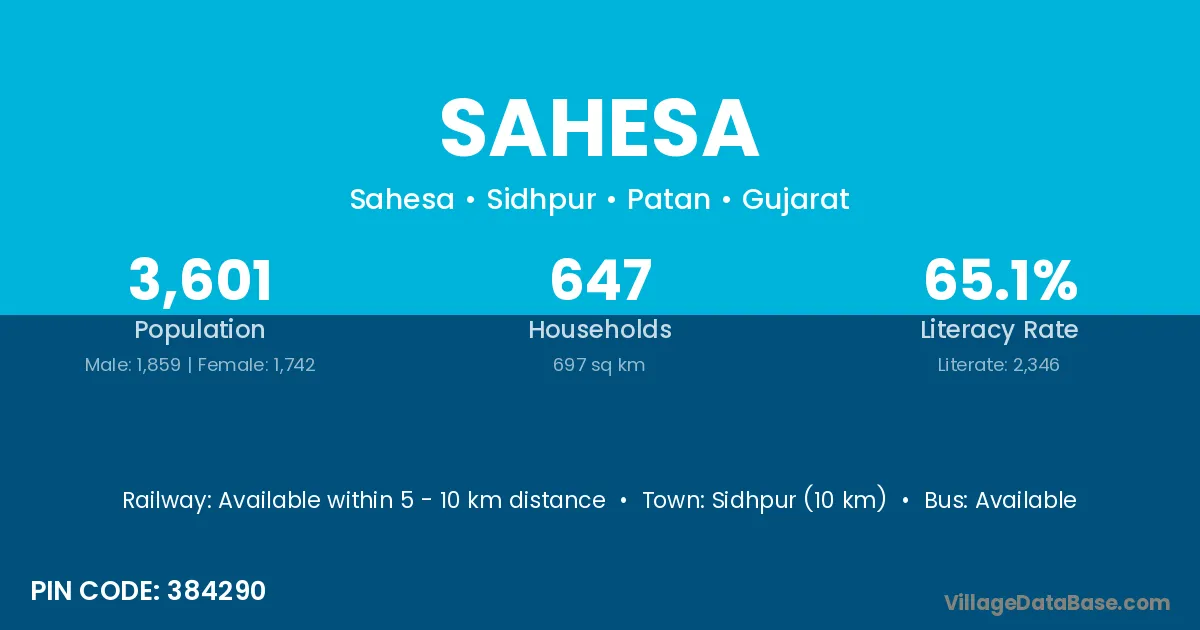 Sidhpur (10 km) is the nearest town to Sahesa village for major economic activities and is located approximately 10 km away.