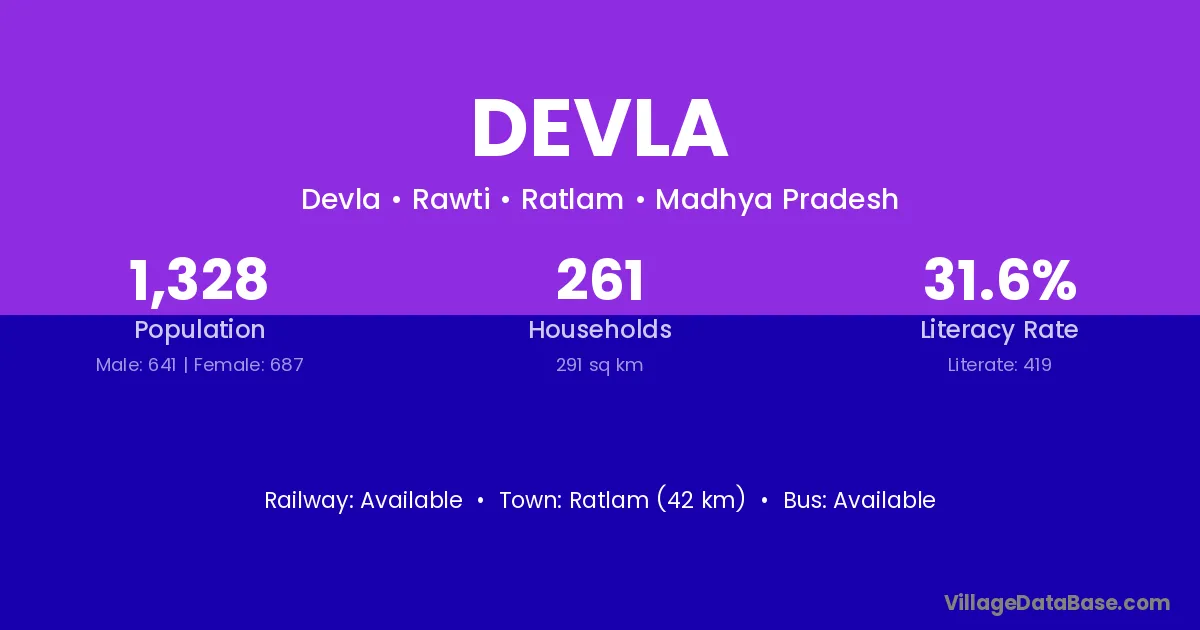 According to Census 2011 information, the village code of Devla village is 364485.