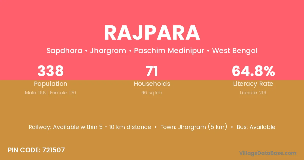 Kalavad (30 km) is the nearest town to Rajpara village for major economic activities and is located approximately 30 km away.