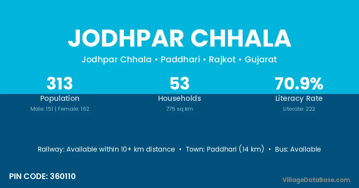 Jodhpar Chhala village has a total population of 313 people, of which 151 are males and 162 are females.