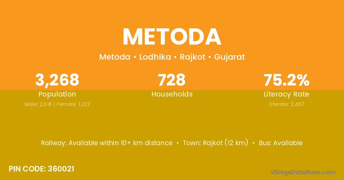 According to Census 2011 information, the village code of Metoda village is 360110.