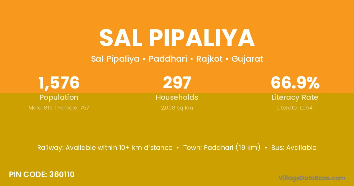 Sal Pipaliya village is located in the Paddhari Taluka of the Rajkot district in Gujarat .