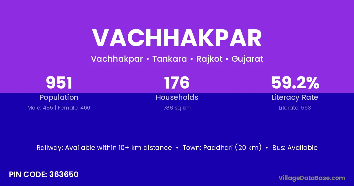 Vachhakpar village has a total population of 951 people, of which 485 are males and 466 are females.