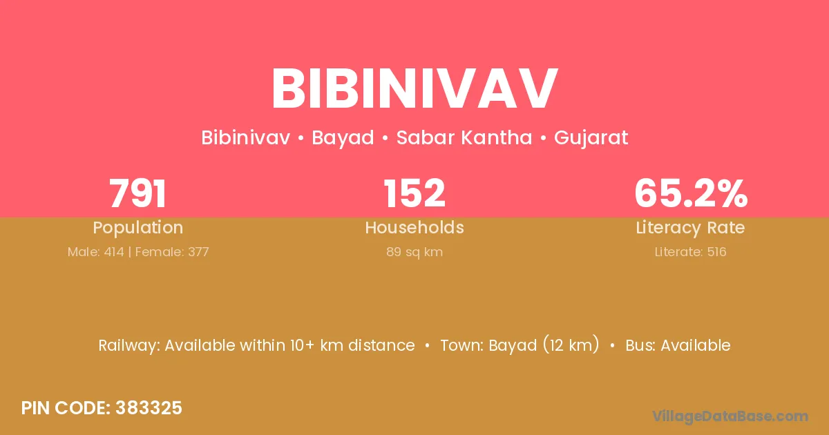 Bayad (12 km) is the nearest town to Bibinivav village for major economic activities and is located approximately 12 km away.