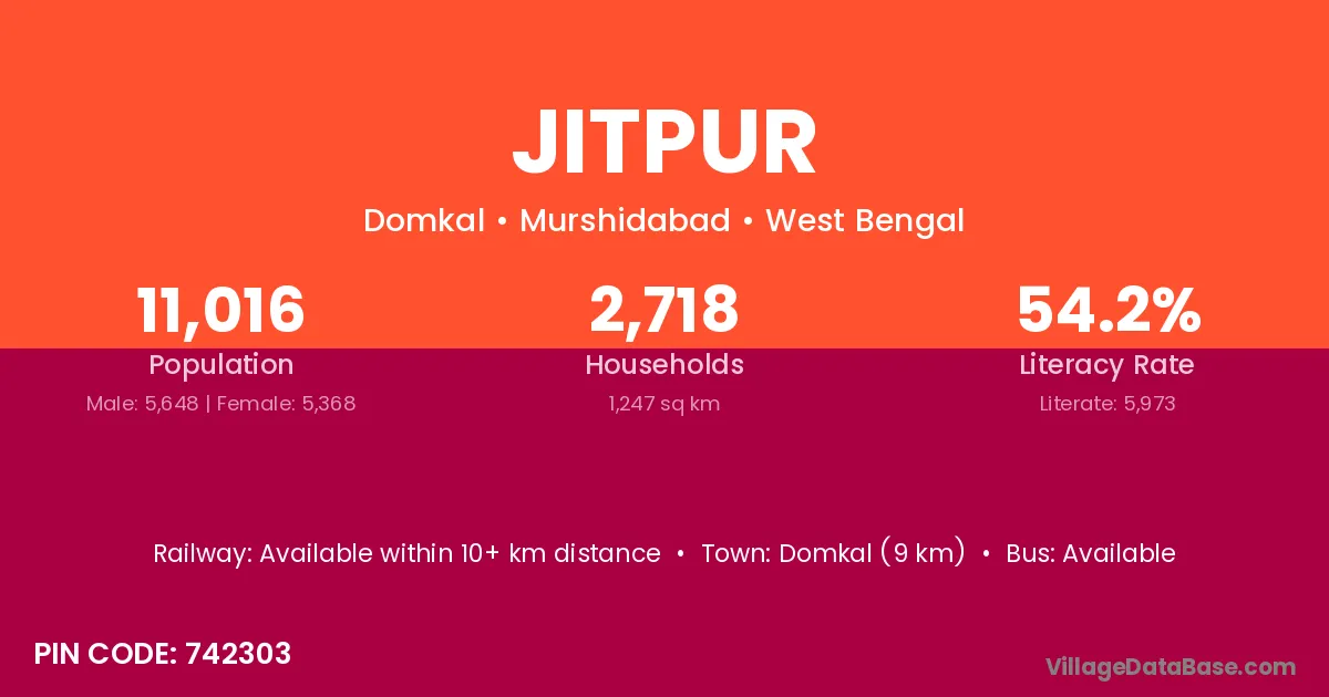 Modasa (29 km) is the nearest town to Jitpur village for major economic activities and is located approximately 29 km away.