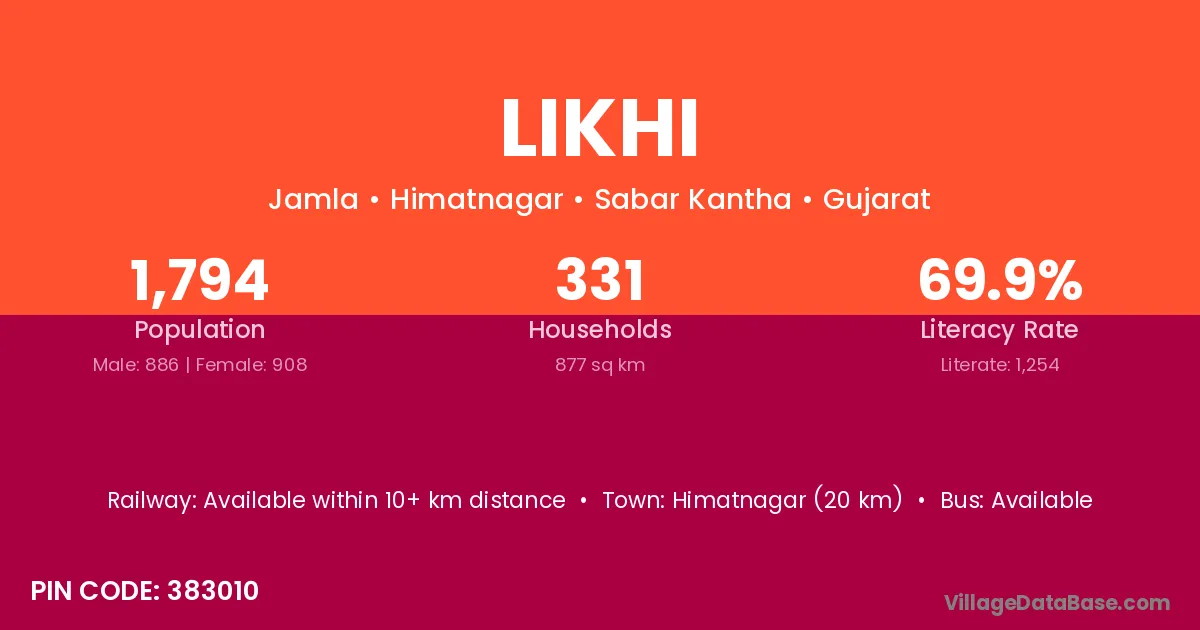 Himatnagar (20 km) is the nearest town to Likhi village for major economic activities and is located approximately 20 km away.
