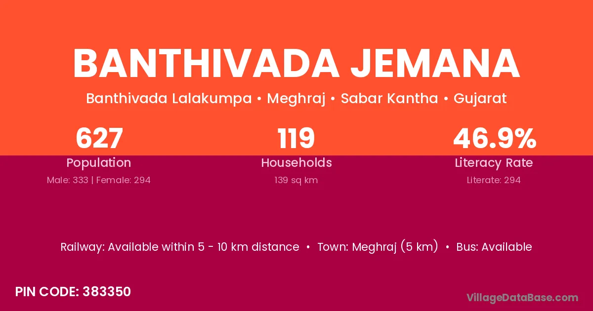 According to Census 2011 information, the village code of Banthivada Jemana village is 383350.