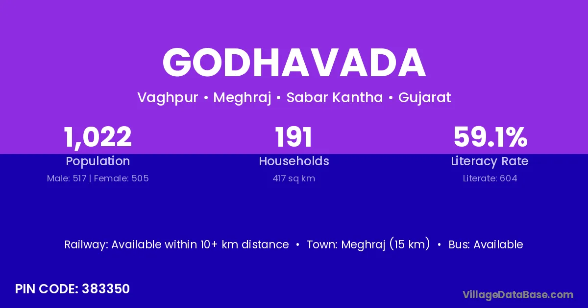 According to Census 2011 information, the village code of Godhavada village is 383350.