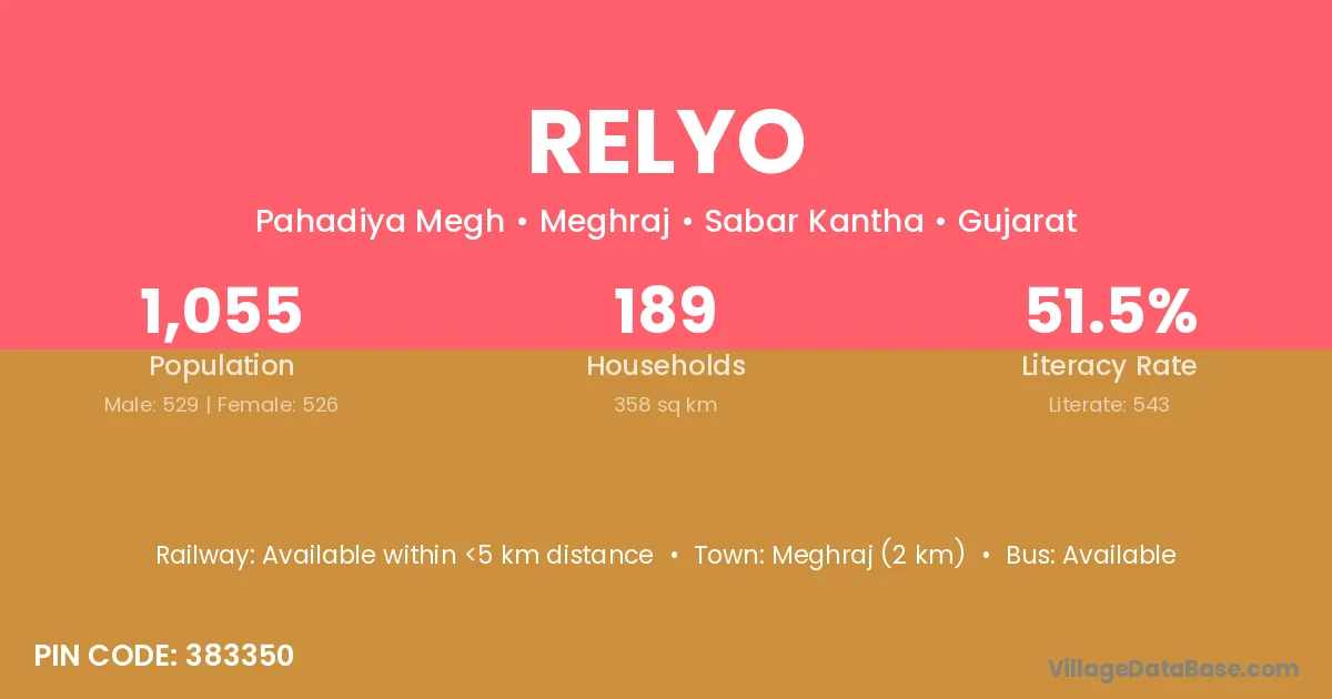 Meghraj (2 km) is the nearest town to Relyo village for major economic activities and is located approximately 2 km away.