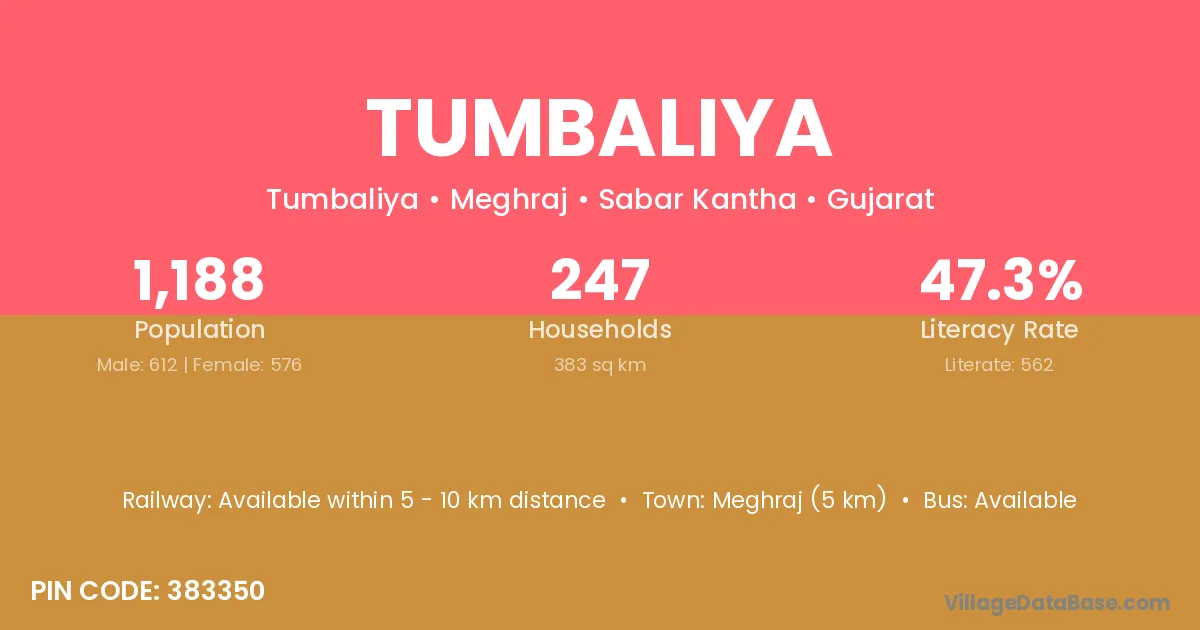 Meghraj (5 km) is the nearest town to Tumbaliya village for major economic activities and is located approximately 5 km away.