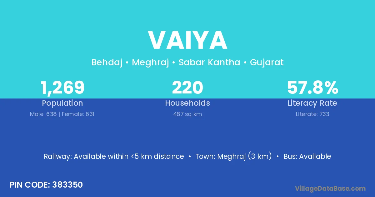 Vaiya village has a total population of 1,269 people, of which 638 are males and 631 are females.