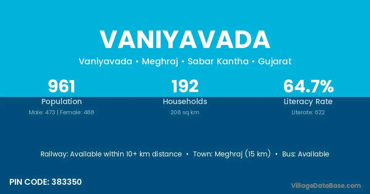 According to Census 2011 information, the village code of Vaniyavada village is 383350.
