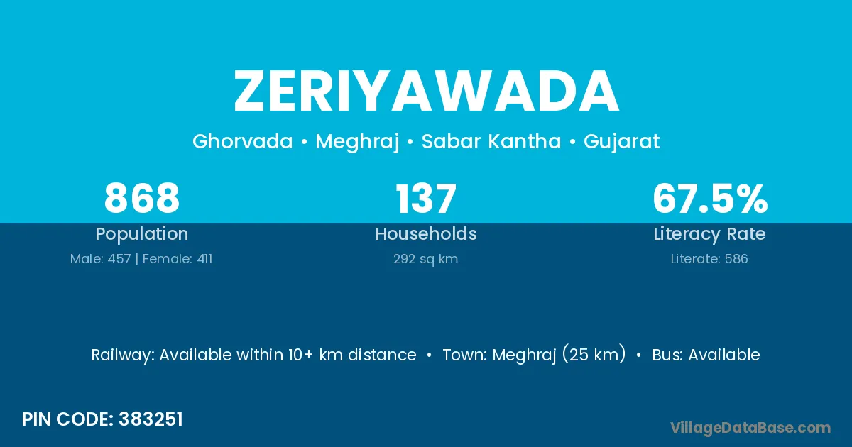According to Census 2011 information, the village code of Zeriyawada village is 383251.