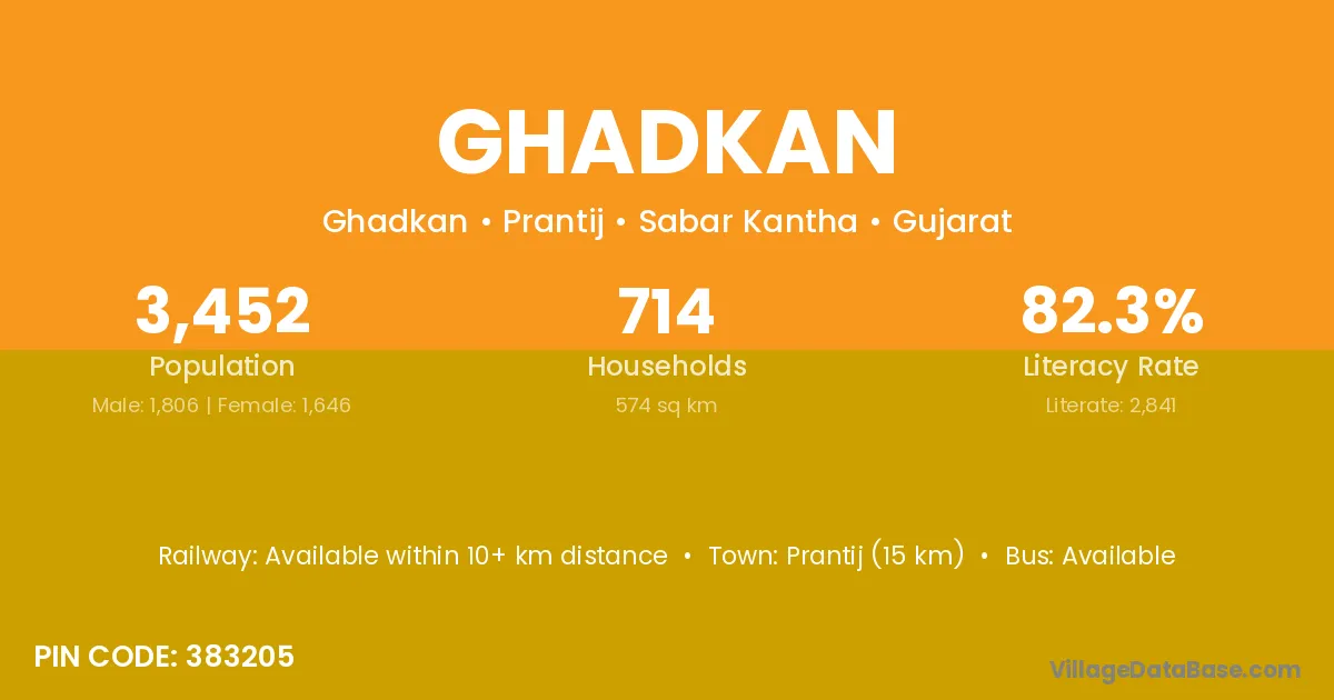 Prantij (15 km) is the nearest town to Ghadkan village for major economic activities and is located approximately 15 km away.