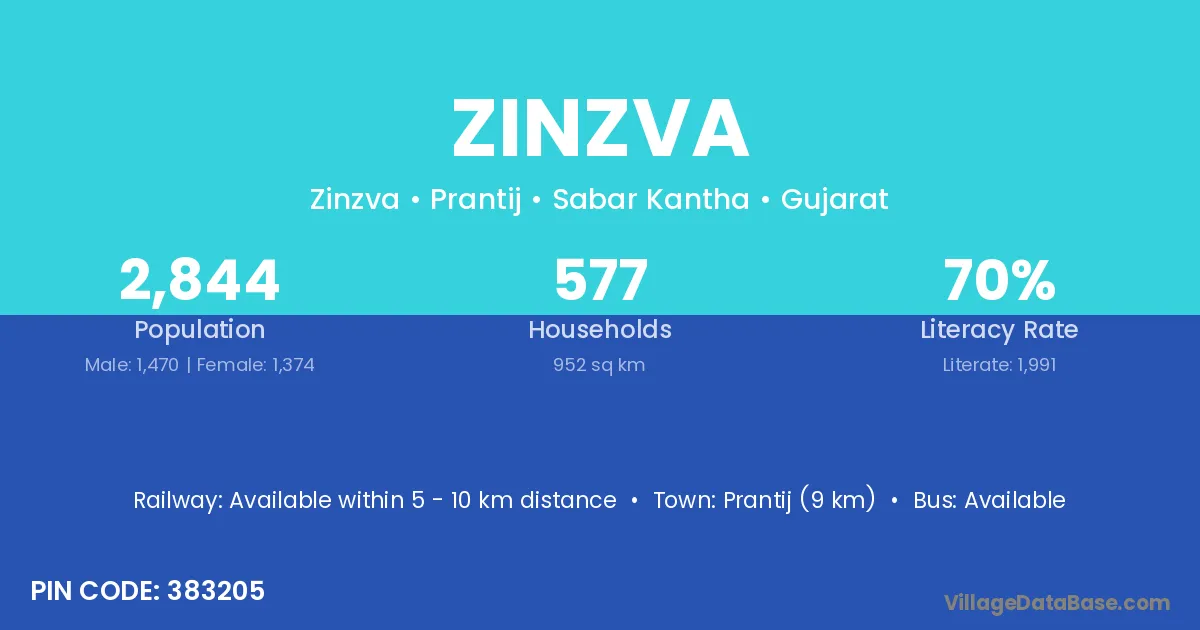 Prantij (9 km) is the nearest town to Zinzva village for major economic activities and is located approximately 9 km away.