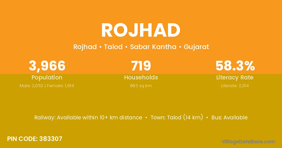 According to Census 2011 information, the village code of Rojhad village is 383307.