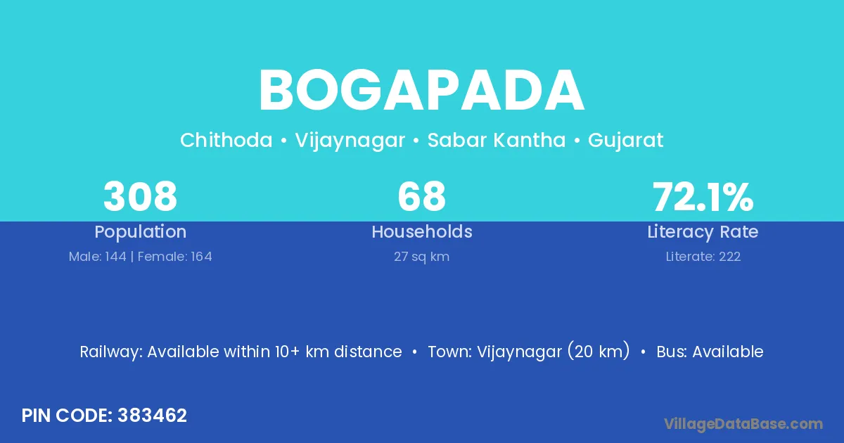 According to Census 2011 information, the village code of Bogapada village is 383462.