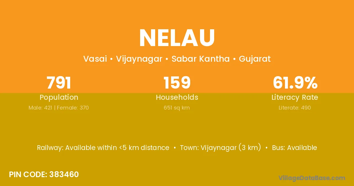 Vijaynagar (3 km) is the nearest town to Nelau village for major economic activities and is located approximately 3 km away.