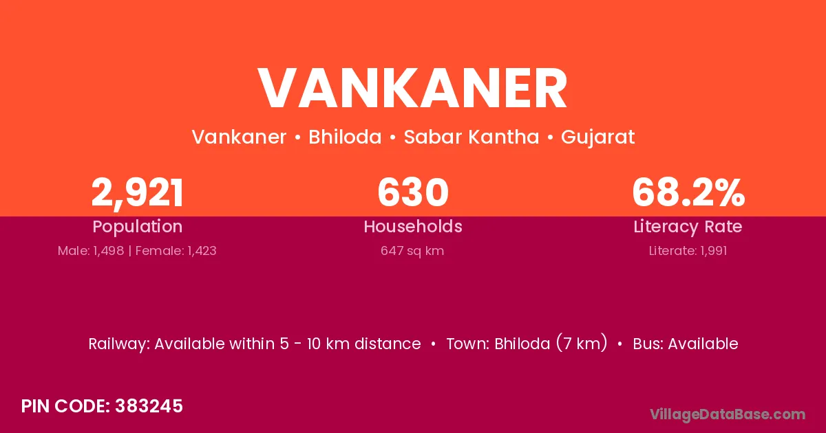 Bardoli (10 km) is the nearest town to Vankaner village for major economic activities and is located approximately 10 km away.