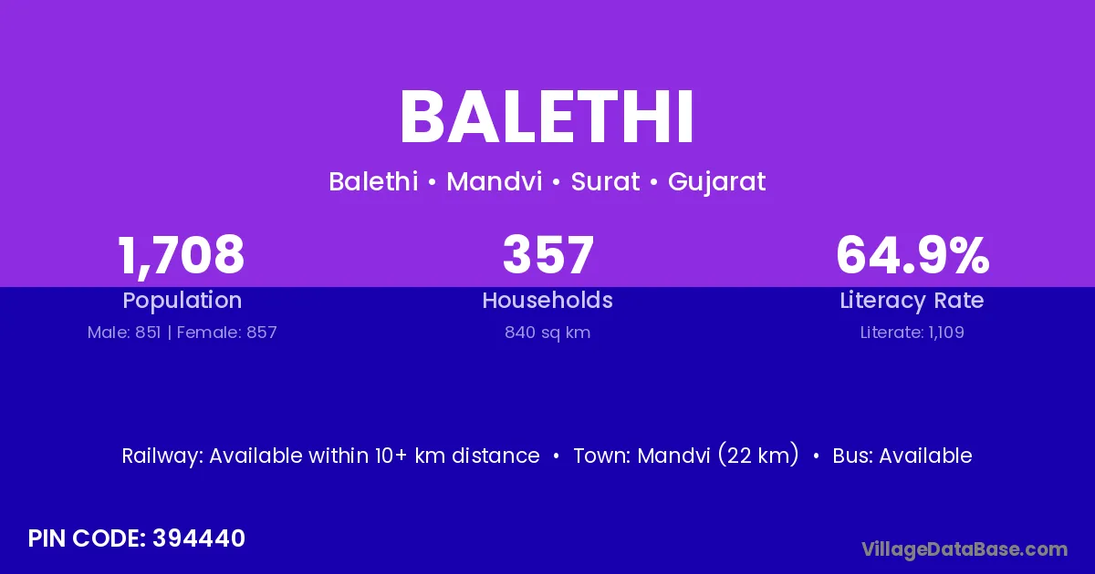 Balethi village is located in the Mandvi Taluka of the Surat district in Gujarat .