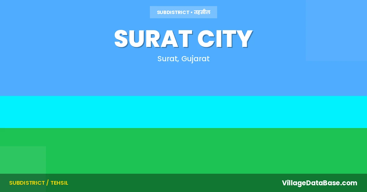 Surat City is a town and Taluka in the Surat district of the Gujarat. In India, a Taluka is a subdivision of a district responsible for the administration and revenue collection of a specific area within the district. Talukas play a crucial role in the local governance structure, contributing significantly to the development and administration of their communities.