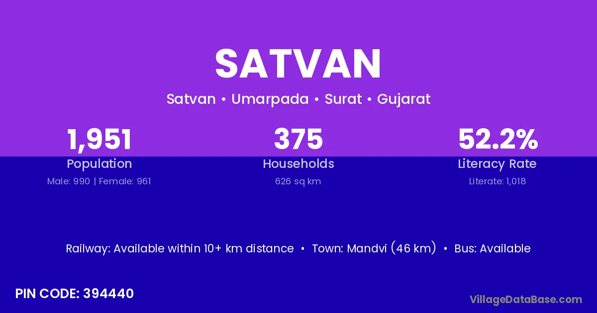 Mandvi (46 km) is the nearest town to Satvan village for major economic activities and is located approximately 46 km away.