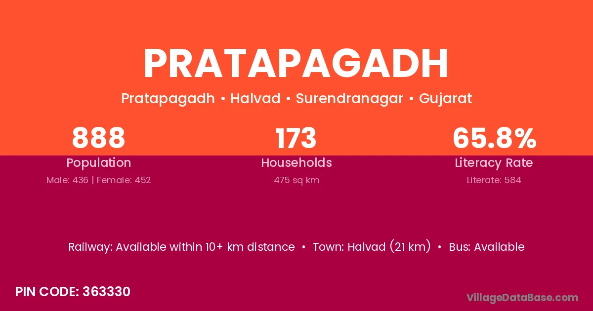 Halvad (21 km) is the nearest town to Pratapagadh village for major economic activities and is located approximately 21 km away.