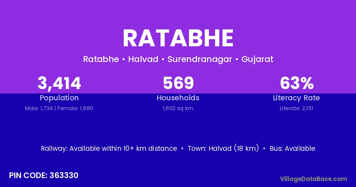 Halvad (18 km) is the nearest town to Ratabhe village for major economic activities and is located approximately 18 km away.