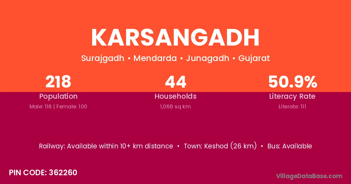 The population of Karsangadh village is distributed between literate and illiterate residents as follows: