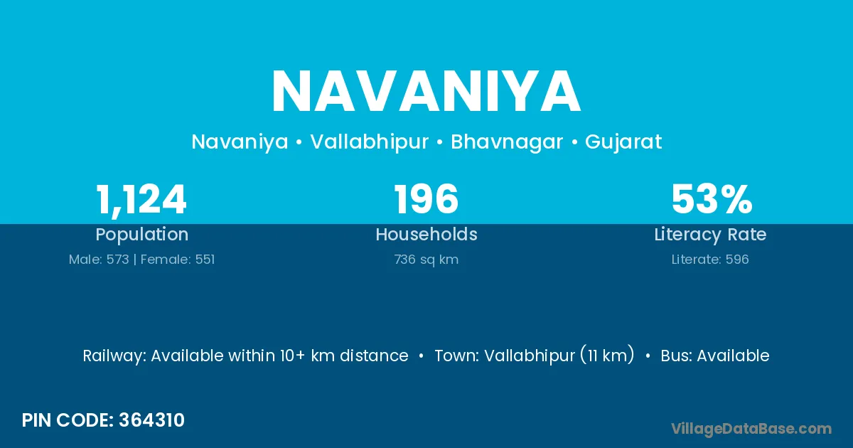 Surendranagar (22 km) is the nearest town to Navaniya village for major economic activities and is located approximately 22 km away.