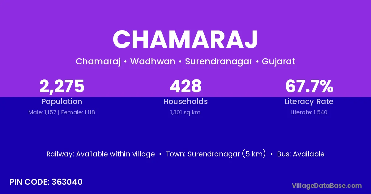 Surendranagar (5 km) is the nearest town to Chamaraj village for major economic activities and is located approximately 5 km away.