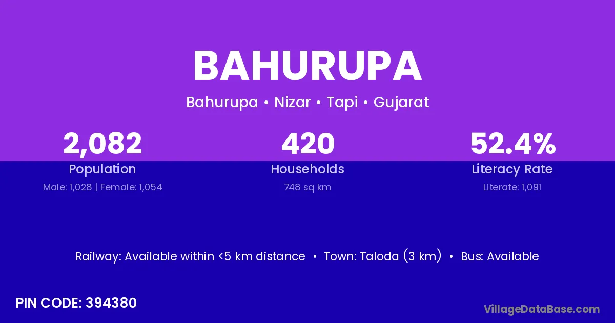 Taloda (3 km) is the nearest town to Bahurupa village for major economic activities and is located approximately 3 km away.