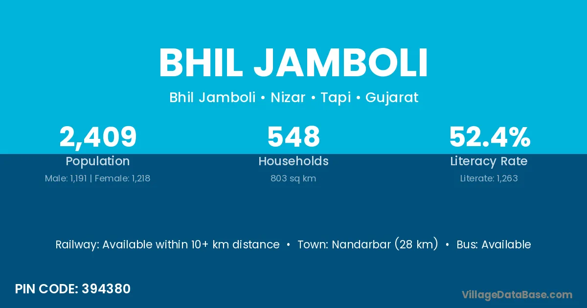 Nandarbar (28 km) is the nearest town to Bhil Jamboli village for major economic activities and is located approximately 28 km away.