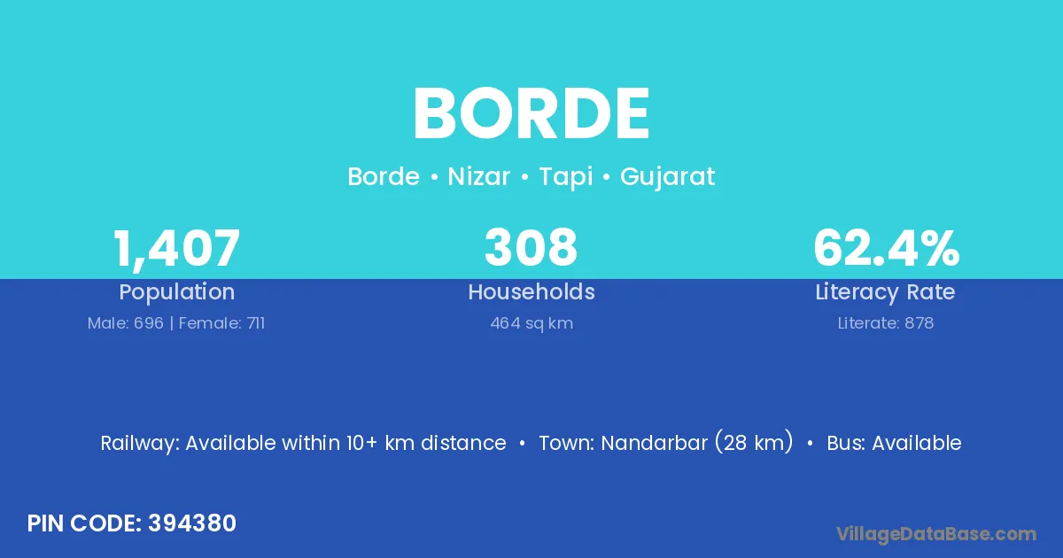 Nandarbar (28 km) is the nearest town to Borde village for major economic activities and is located approximately 28 km away.