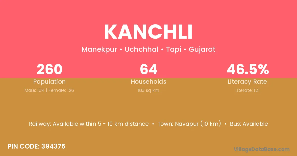 Navapur (10 km) is the nearest town to Kanchli village for major economic activities and is located approximately 10 km away.