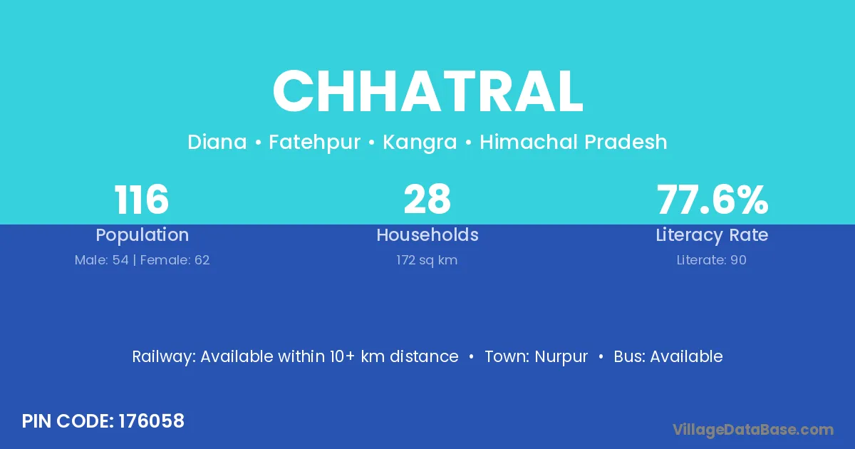 Dabhoi (15 km) is the nearest town to Chhatral village for major economic activities and is located approximately 15 km away.