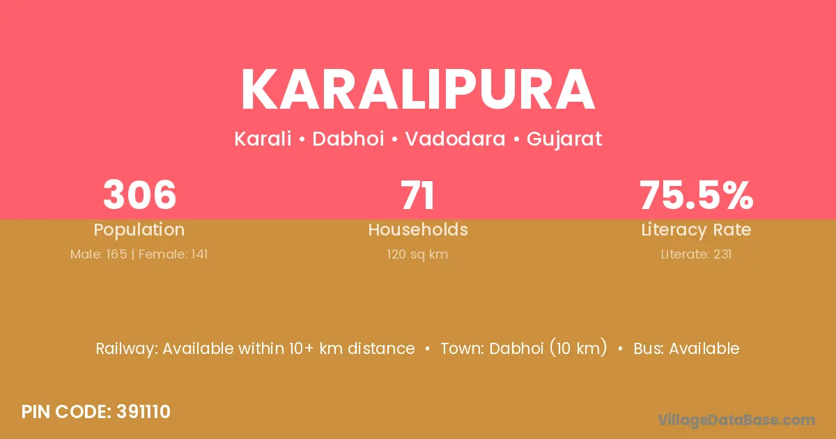 Dabhoi (10 km) is the nearest town to Karalipura village for major economic activities and is located approximately 10 km away.
