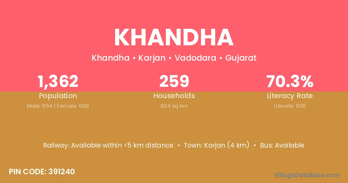 Karjan (4 km) is the nearest town to Khandha village for major economic activities and is located approximately 4 km away.