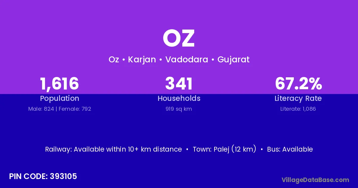 Oz village is located in the Karjan Taluka of the Vadodara district in Gujarat .