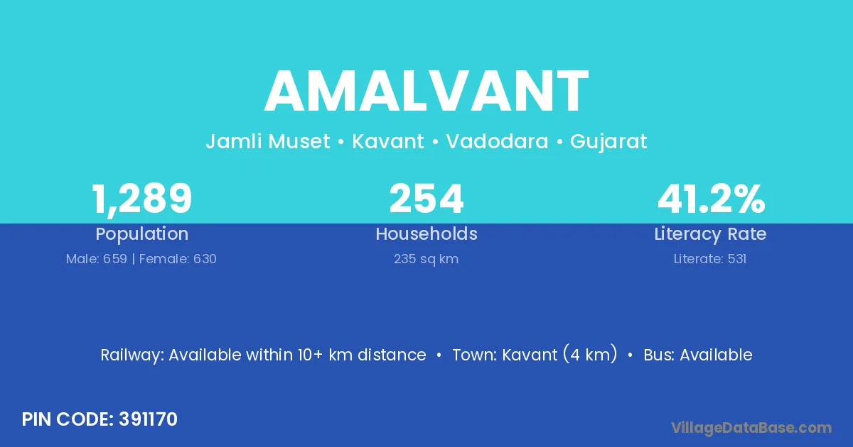 Kavant (4 km) is the nearest town to Amalvant village for major economic activities and is located approximately 4 km away.