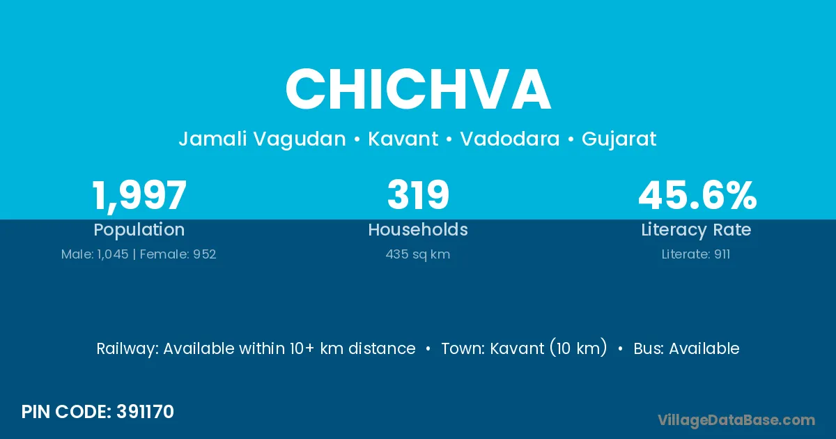 Kavant (10 km) is the nearest town to Chichva village for major economic activities and is located approximately 10 km away.