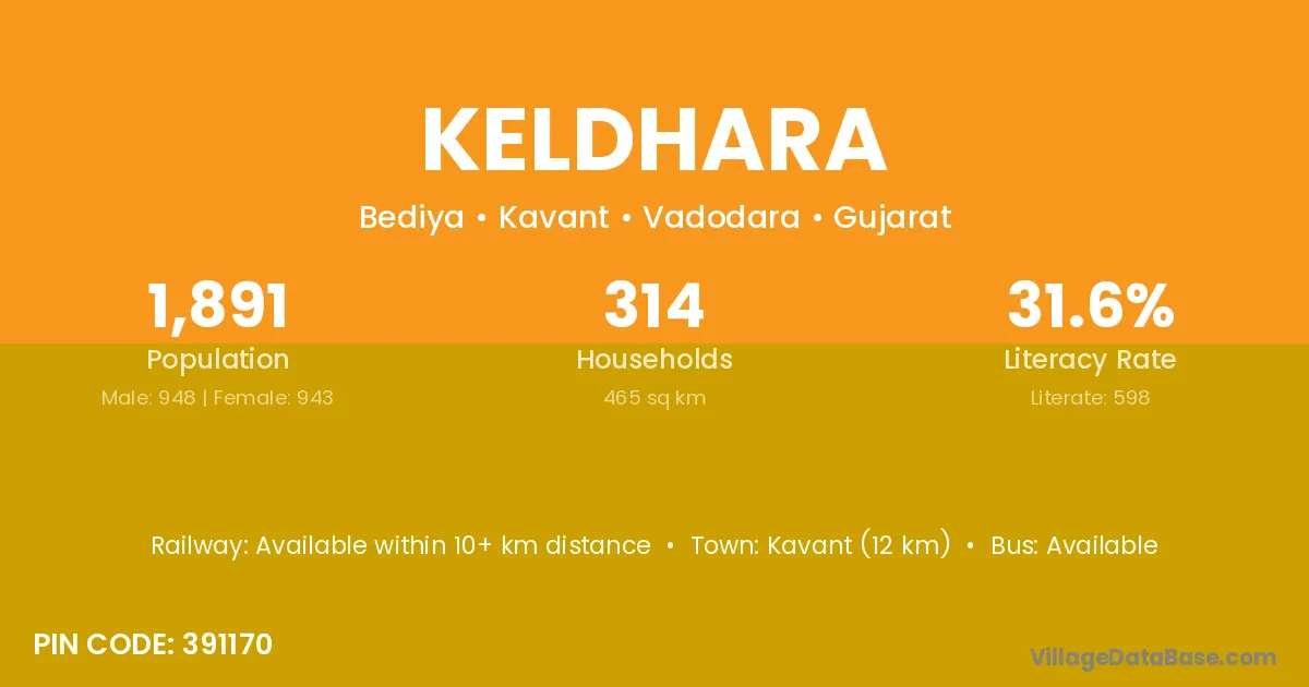According to Census 2011 information, the village code of Keldhara village is 391170.