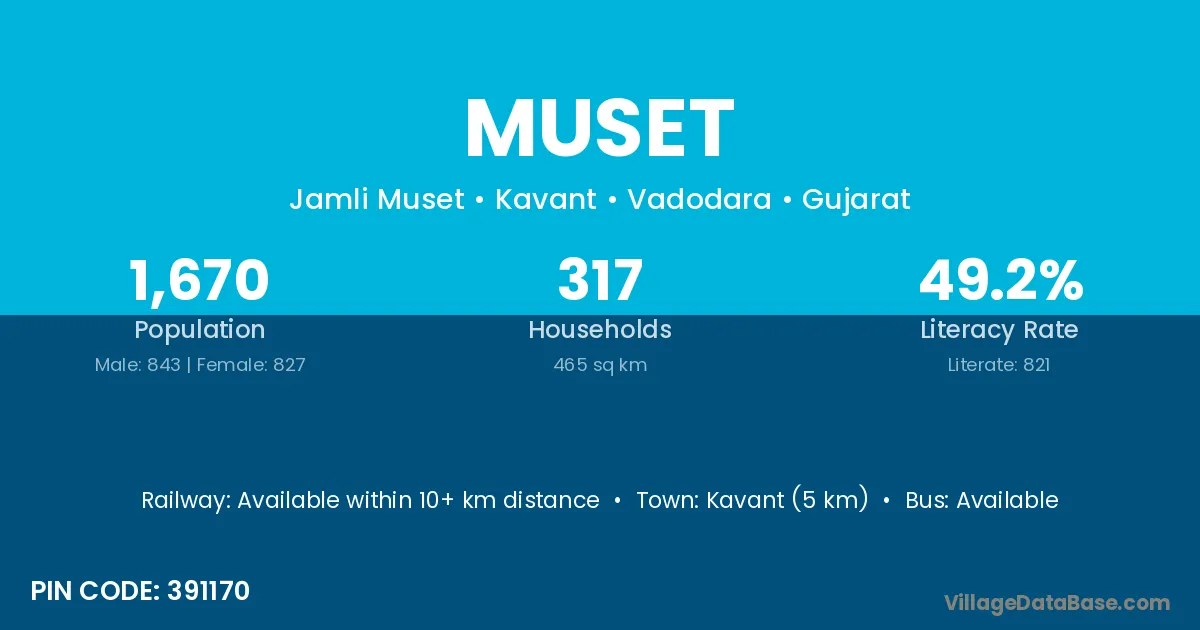 According to Census 2011 information, the village code of Muset village is 391170.
