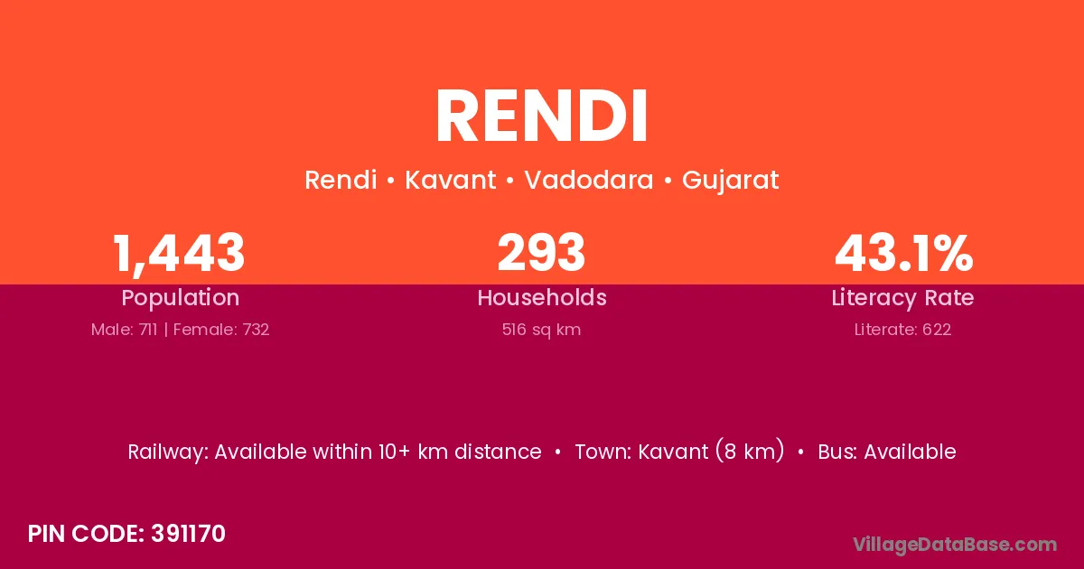Kavant (8 km) is the nearest town to Rendi village for major economic activities and is located approximately 8 km away.