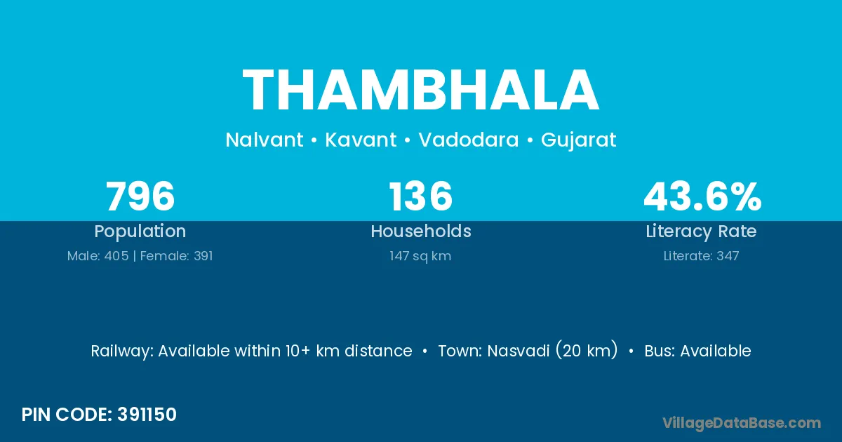 According to Census 2011 information, the village code of Thambhala village is 391150.