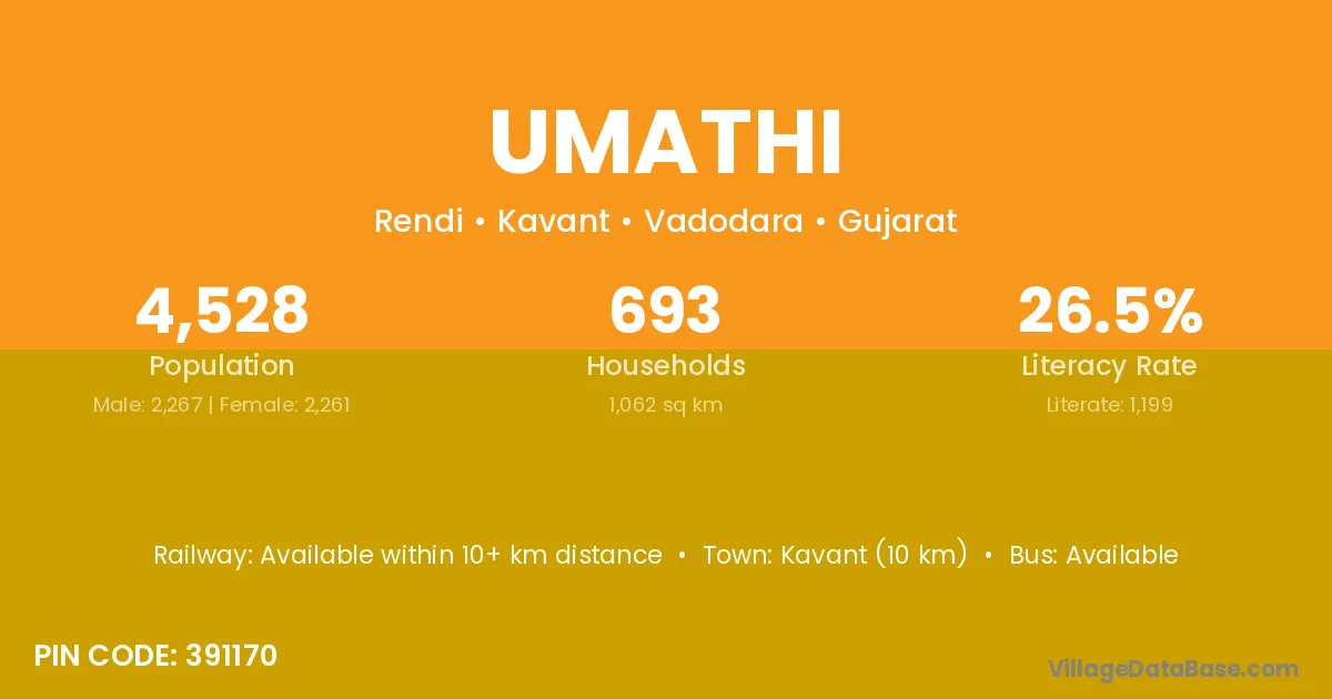According to Census 2011 information, the village code of Umathi village is 391170.