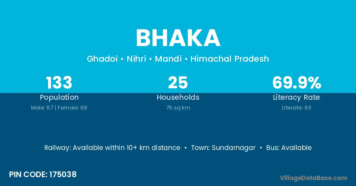 Nasvadi (19 km) is the nearest town to Bhaka village for major economic activities and is located approximately 19 km away.