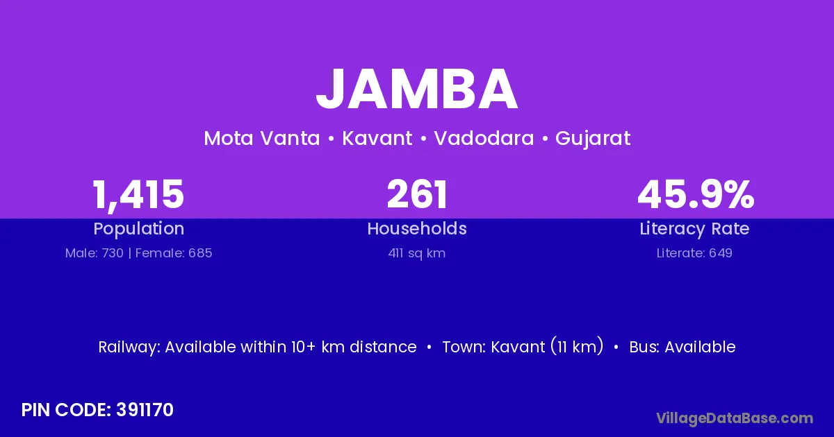 According to Census 2011 information, the village code of Jamba village is 391150.